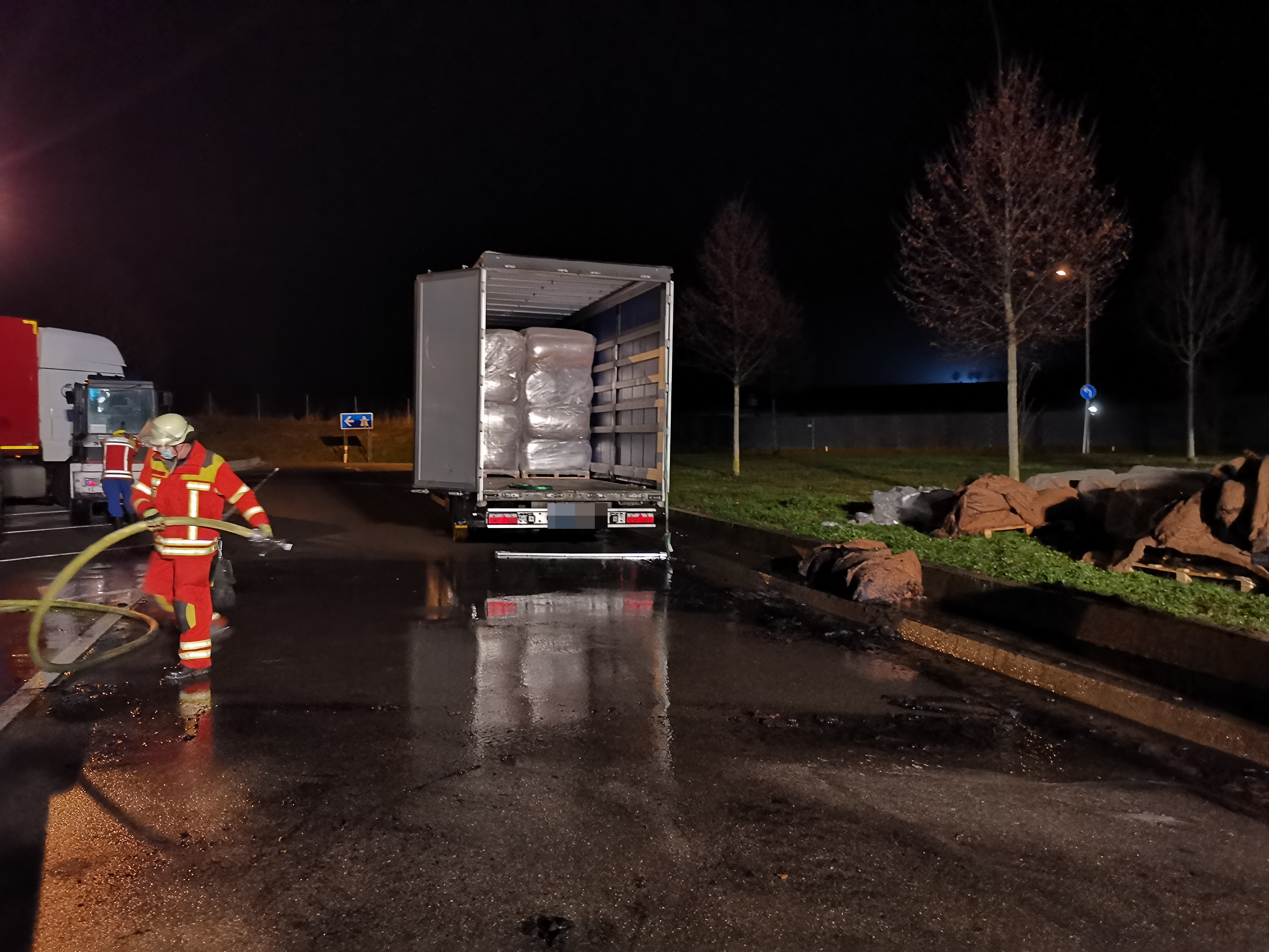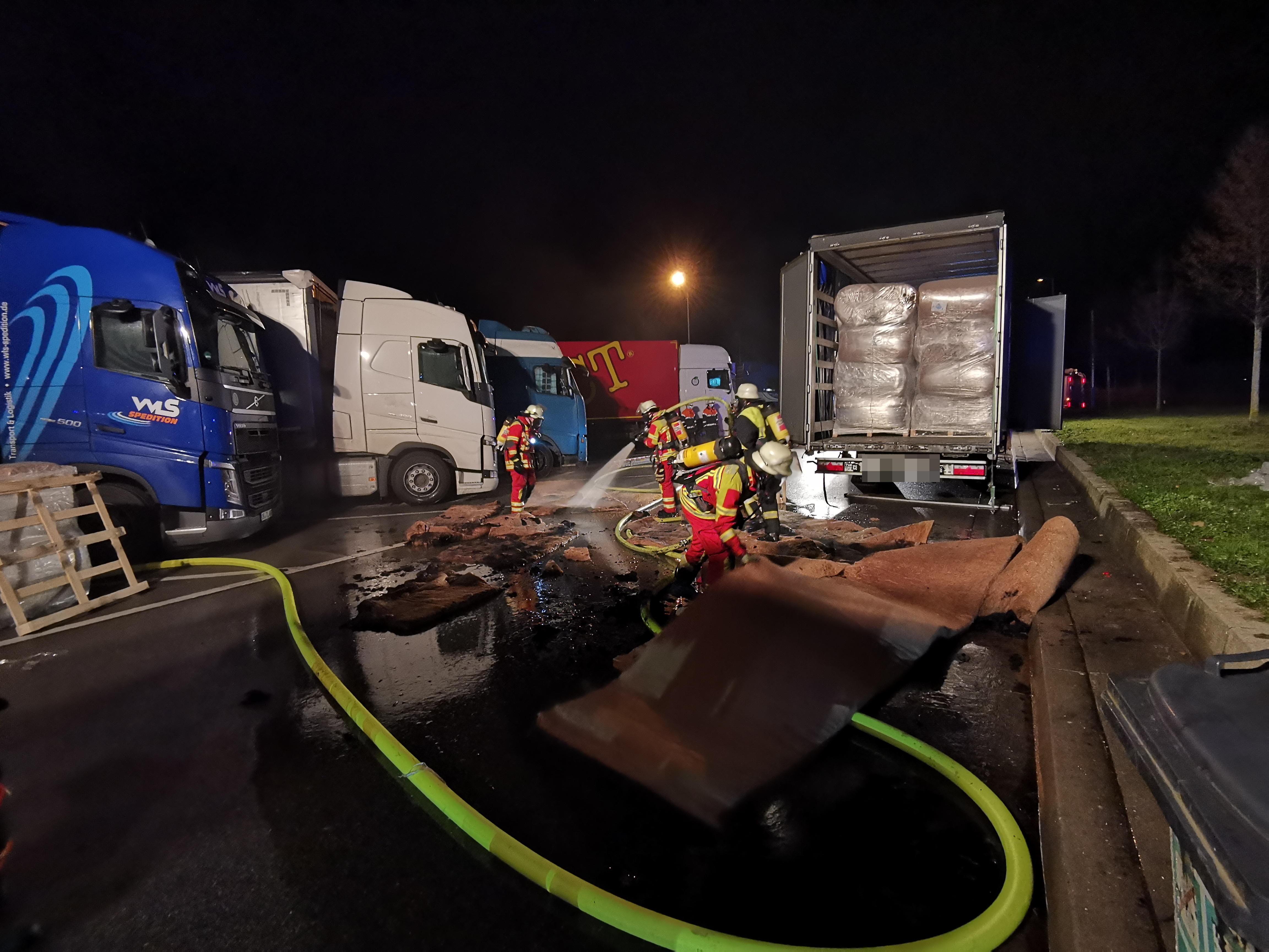 Die brennende ladung, welche aus Dämmaterial bestand wurde für weitere Löscharbeiten ausgeladen.
