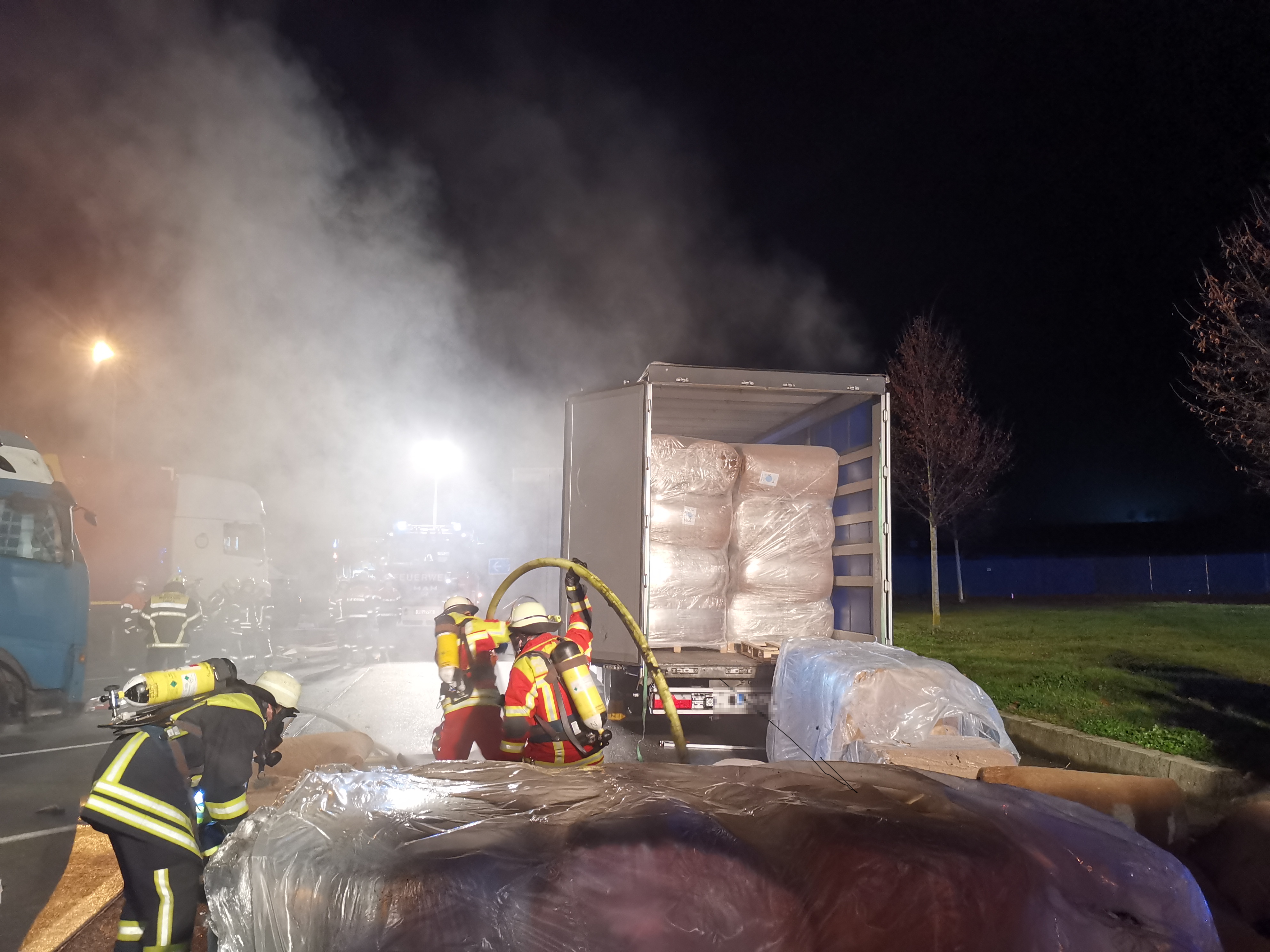 Wir bereiteten einen Löschangriff vor und ein Trupp unter schweren Atemschutz öffnete den Anhänger.