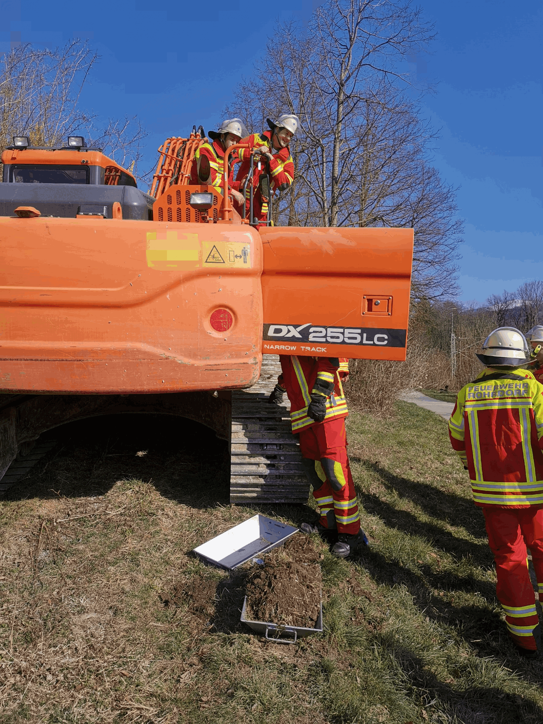 Am Sonntagnachmittag wurde die Feuerwehr Rohrdorf zu einem Bagger alamiert, welcher aufgrund der Sonneneinstrahlung und eines zu vollen Tanks, Diesel verlor. Der Bauunternehmer wurde verständigt, der Bagger durch diesen entfernt und kontaminiertes Erdreich beseitigt.