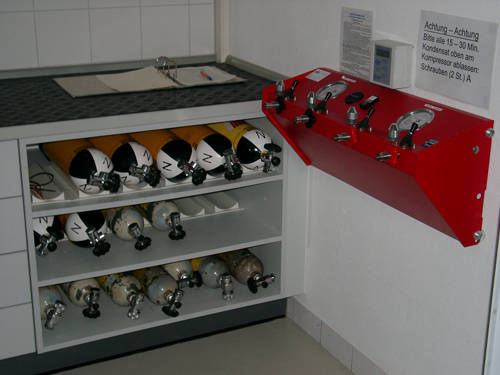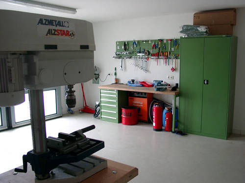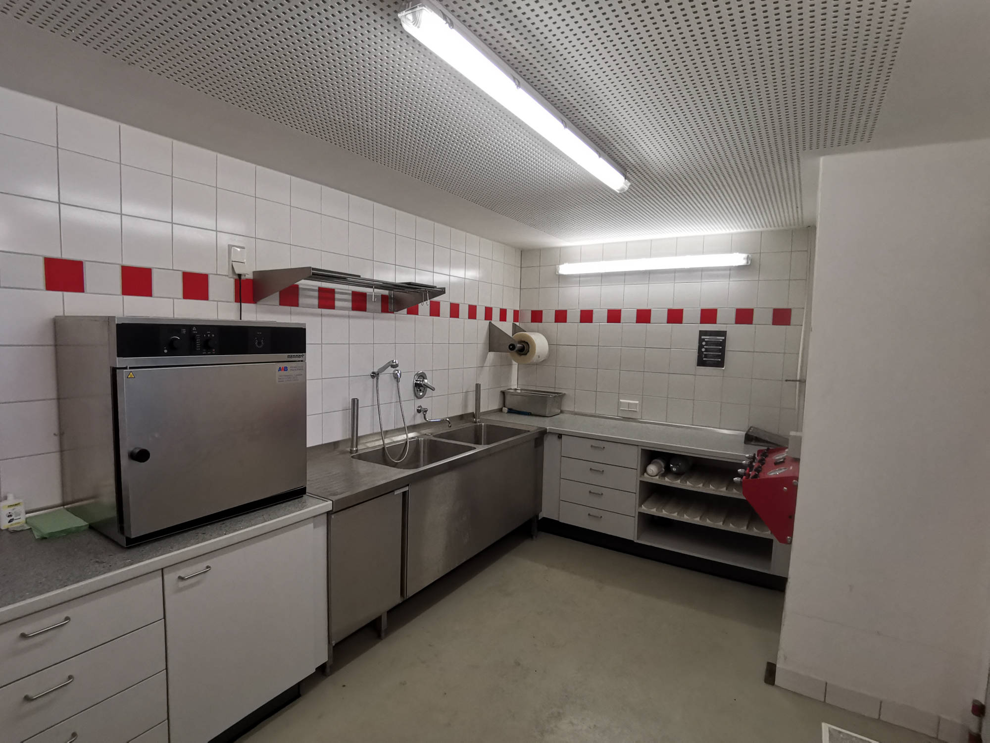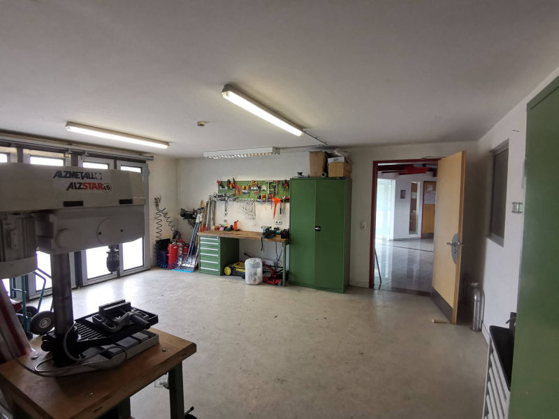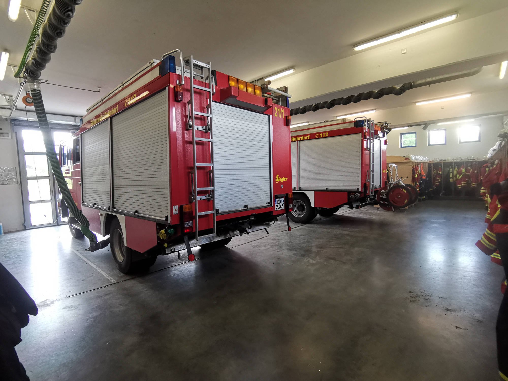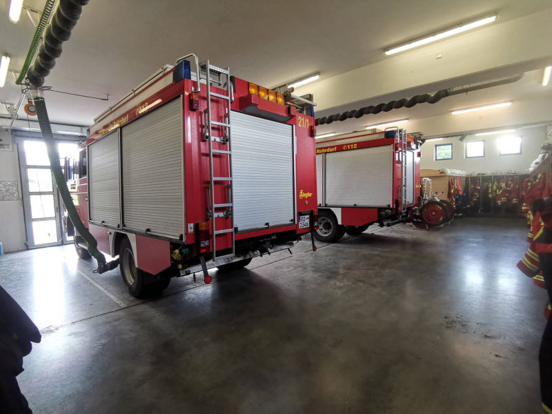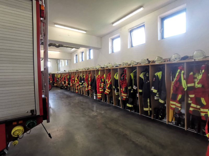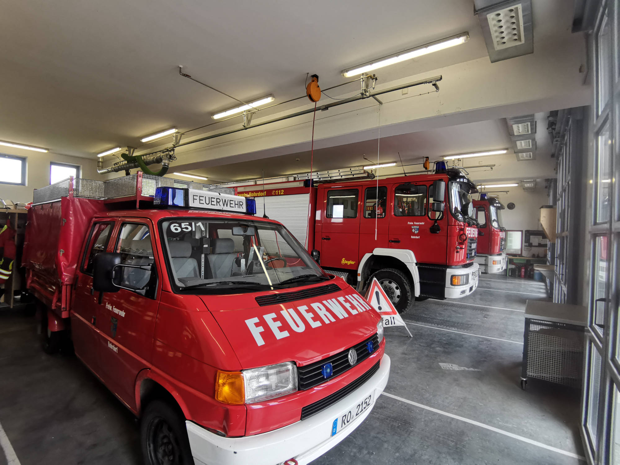 Das Erdgeschoss ist in zwei Fahrzeughallen unterteilt. Eine große, welche für drei Fahrzeuge Platz bietet und eine Waschhalle, welche auch als Stellplatz genutzt werden kann. Eine Einsatzzentrale sowie eine Arbeits- und Atemschutzwerkstatt finden ebenso im Erdgeschoss ihrem Platz.