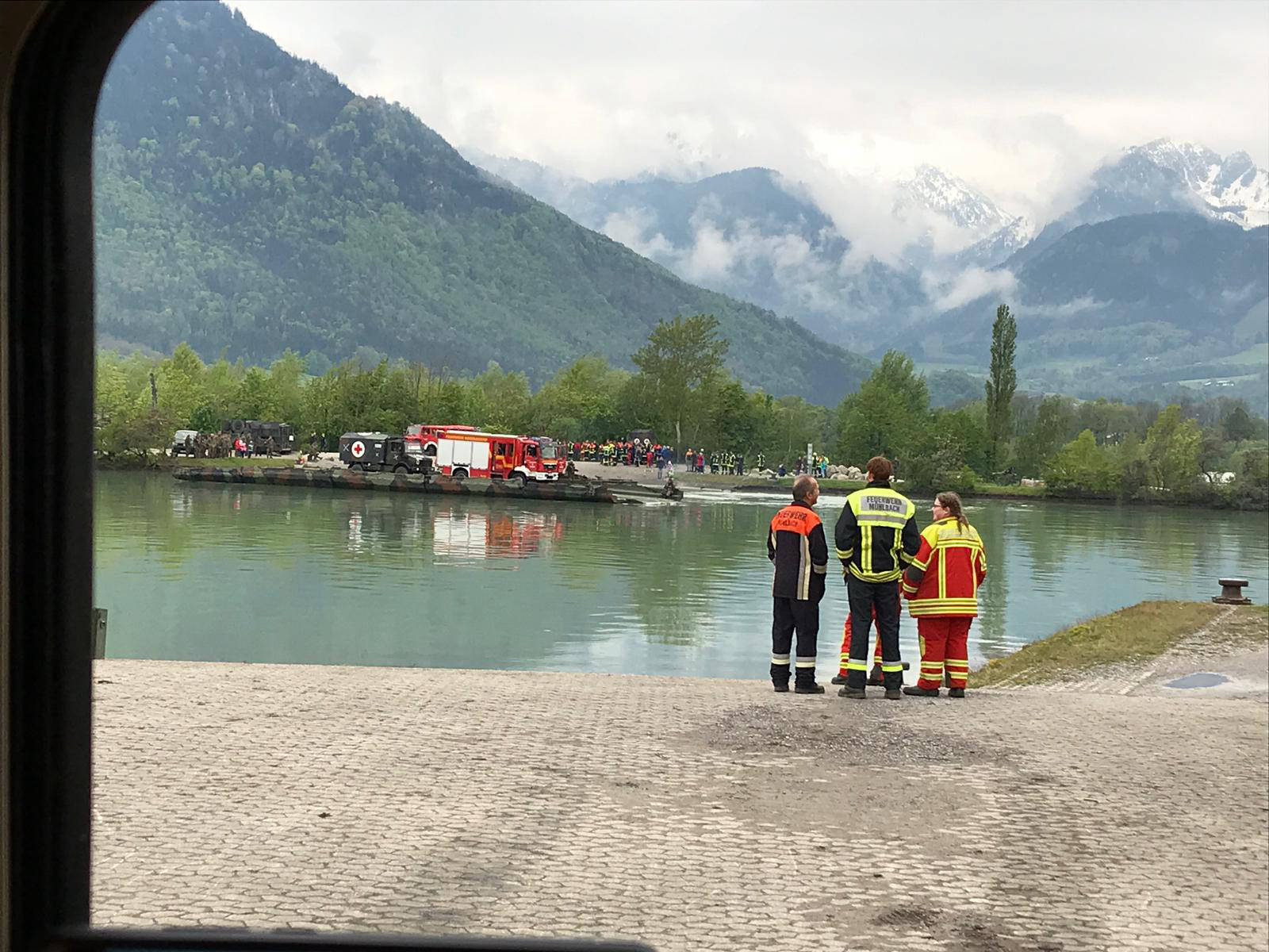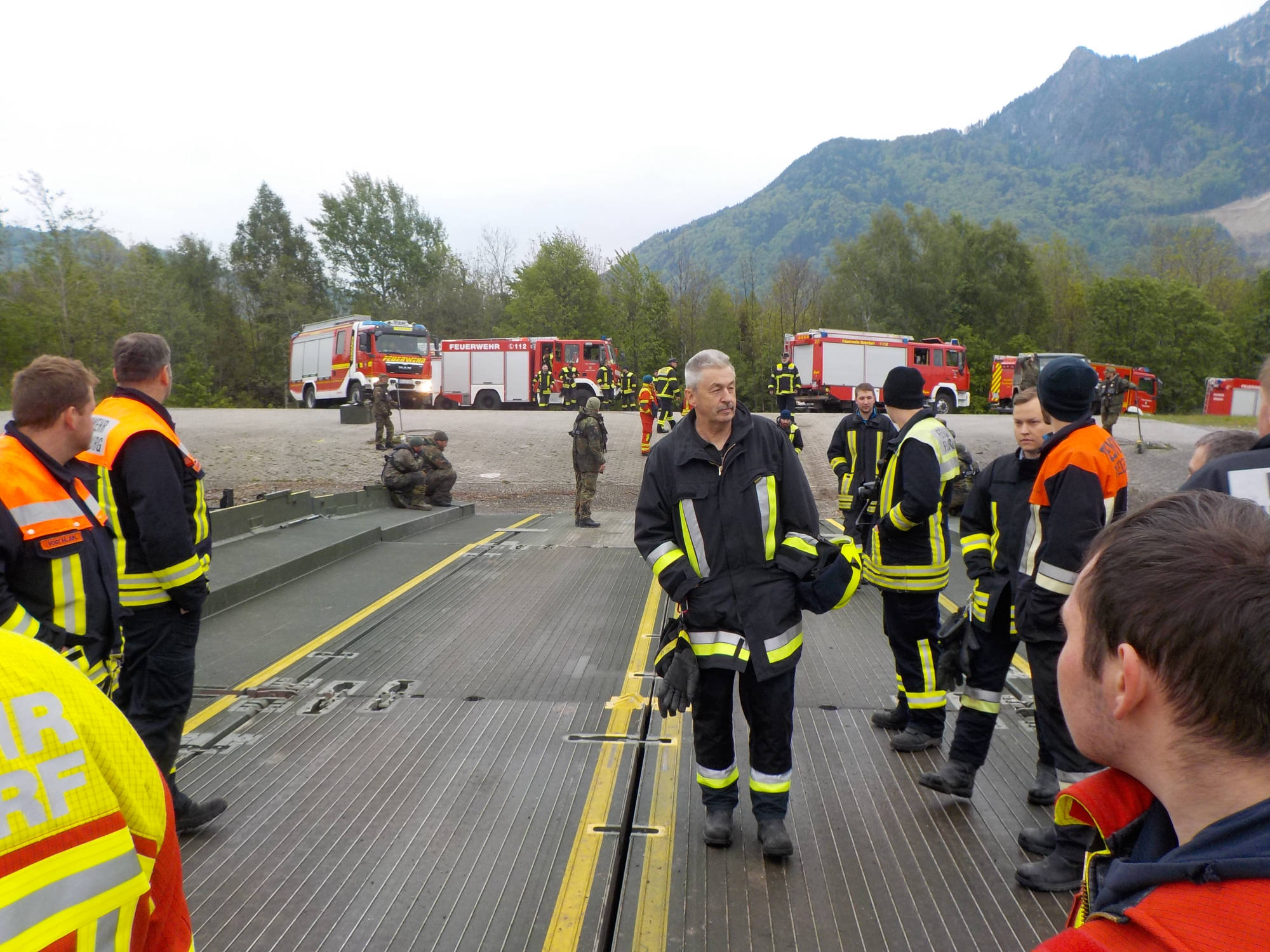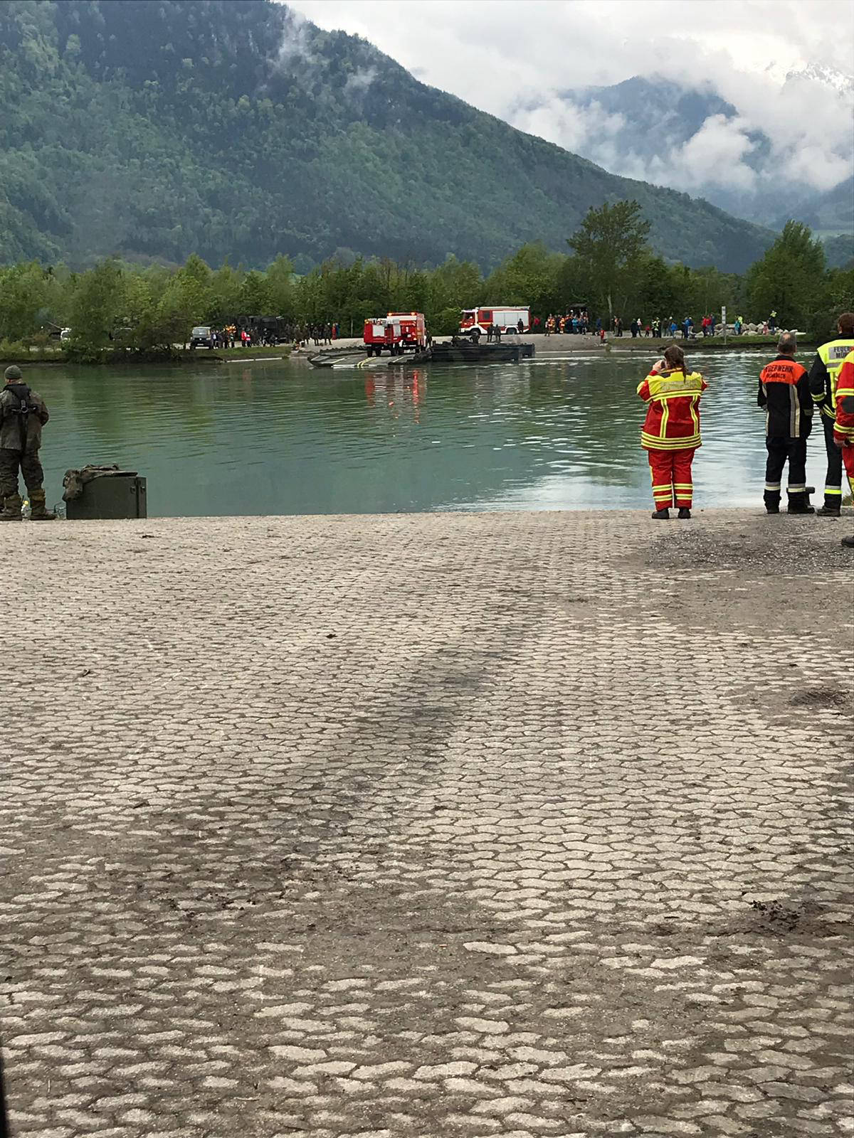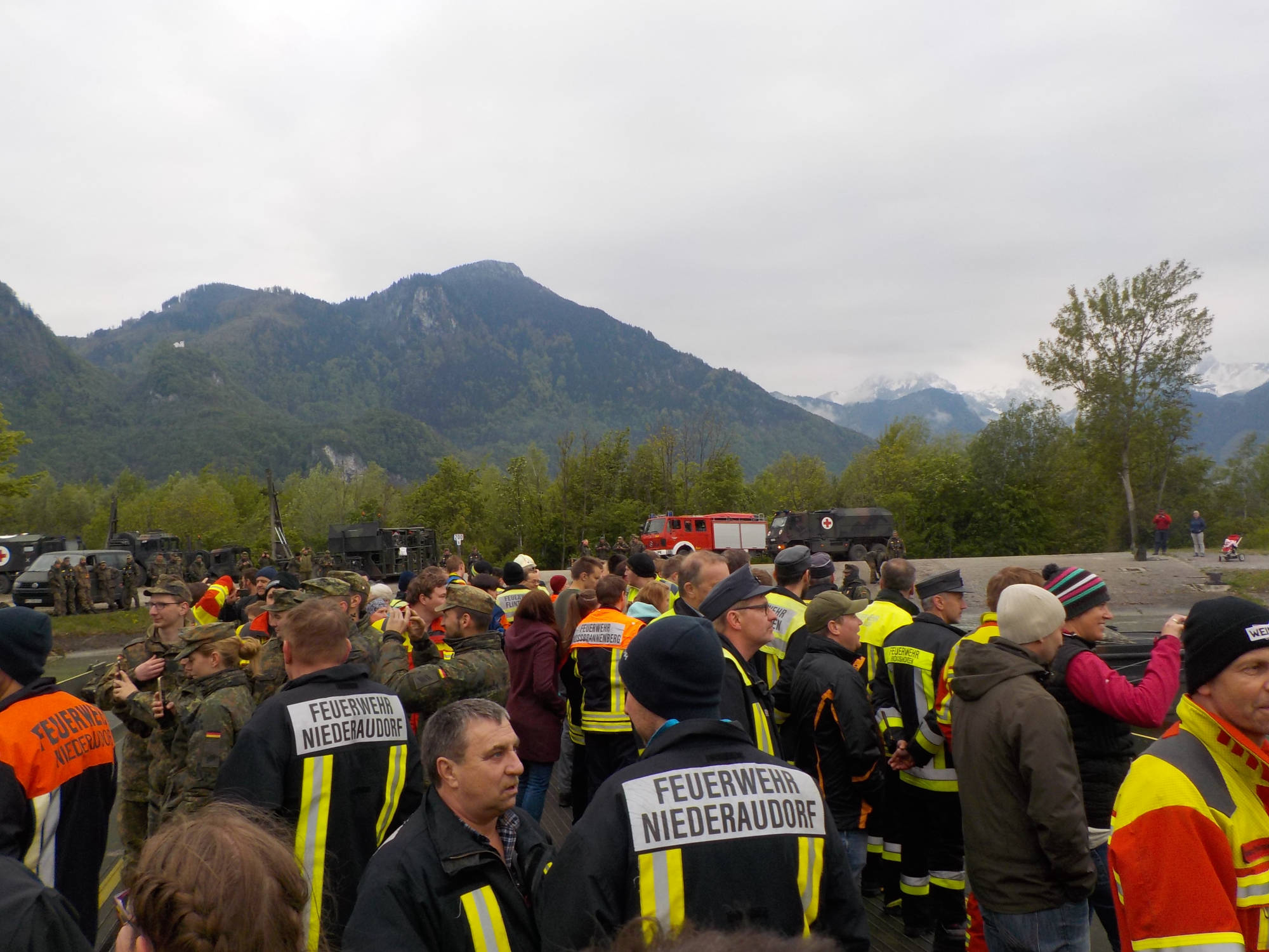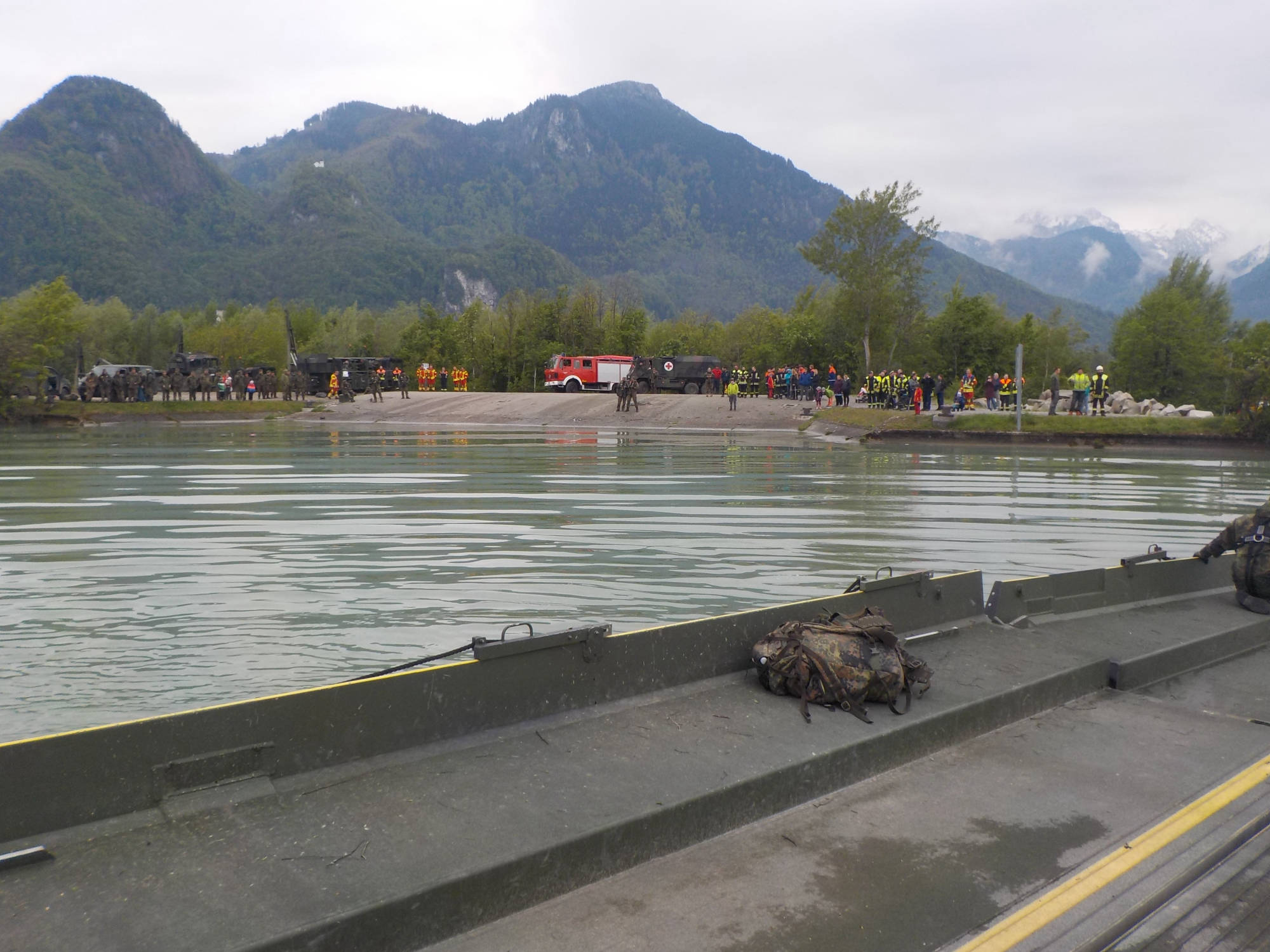 Zurzeit findet in der Region die Übung "Berglöwe" der Bundeswehr mit 1500 Soldaten und 250 Fahrzeugen statt. In Ramen der Übung wurde auch die Überquerung des Inn mit einem Floß geübt. Am gestrigen Mittwoch fuhren wir mit einer kleinen Delegation unserer Feuerwehr nach Brannenburg zum ehemaligen Übungsgelände der Bundeswehr, um dort mithilfe des Floßes über den Inn gebracht zu werden. Vor Ort angekommen merkte man schnell das große interesse der Bevölkerung und die rege Teilnahme anderer Hilfsorganisationen, welche gespannt den Soldatinnen und Soldaten bei ihrer Arbeit zuschauten. Nachdem wir uns das Spektakel angesehen haben und über den Inn gefahren wurden, kehrten wir wieder zum Gerätehaus zurück. Ein durchaus lehrreicher und vor allem Interessanter Ausflug, welcher auch die tolle Arbeit der Bundeswehr veranschaulichte.