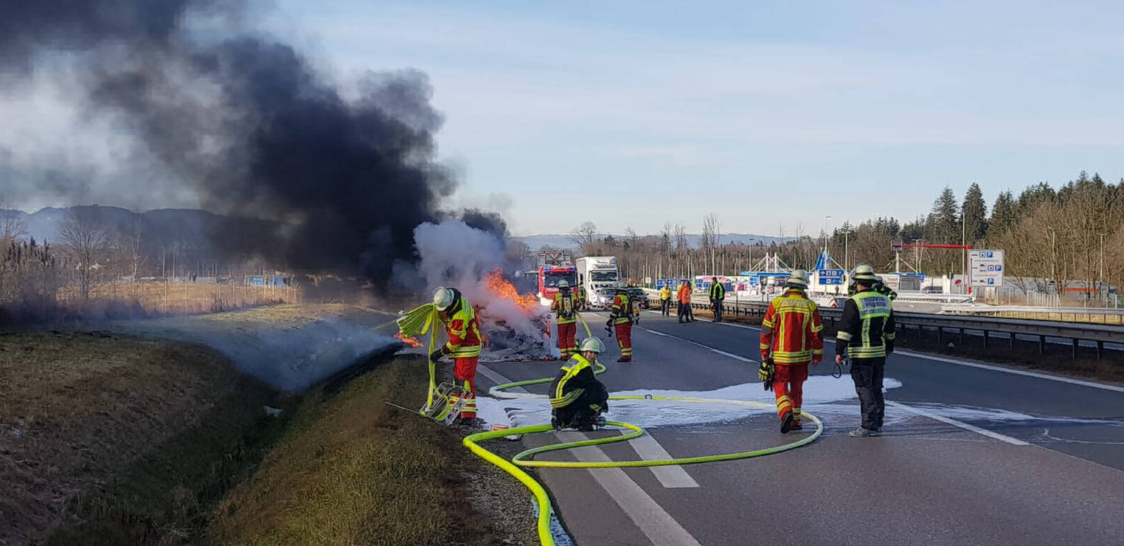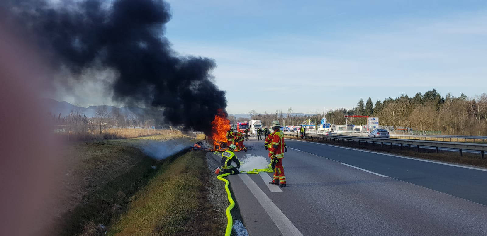 Am Dienstag, den 14.01 wurden wir um 11:14 Uhr auf die Autobahn A8 in Fahrtrichtung Salzburg alarmiert. Auf Höhe der dortigen Rastanlage Samerberg Süd wurde ein brennender PKW gemeldet. Wir löschten während einer Vollsperre der A8 den PKW ab und konnten nach einiger Zeit wieder in das Feuerwehrhaus einrücken.