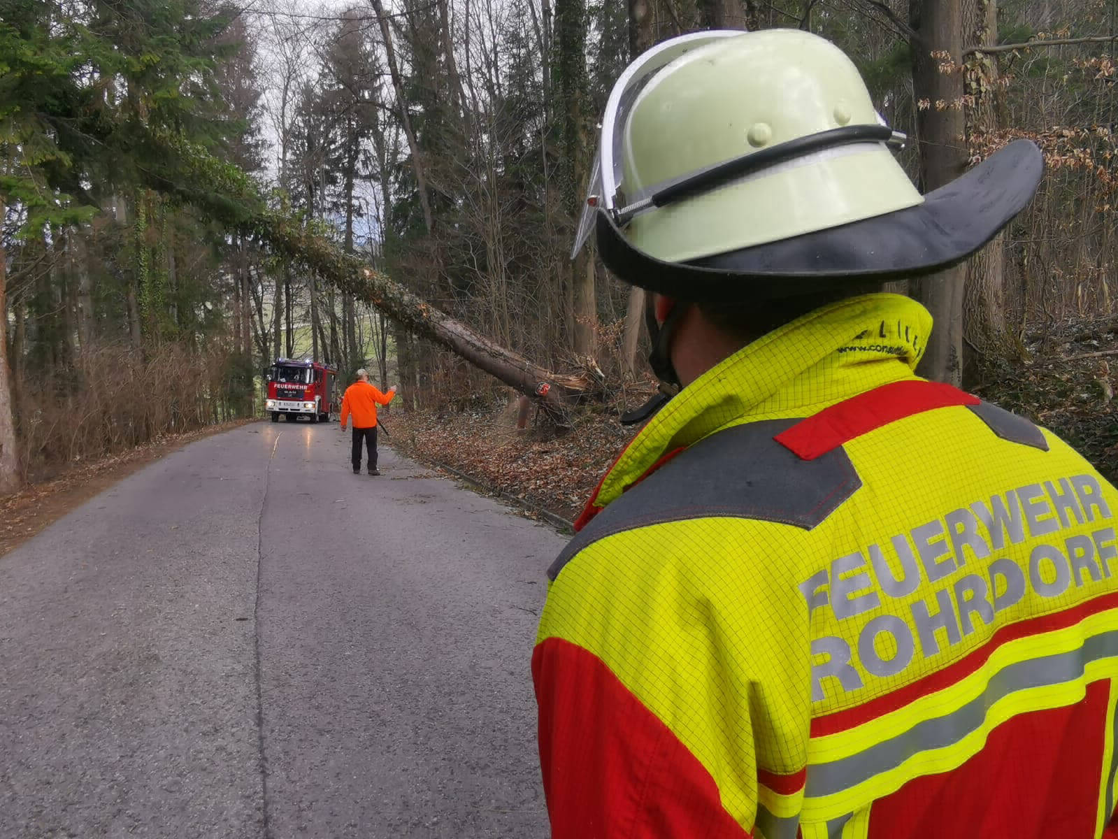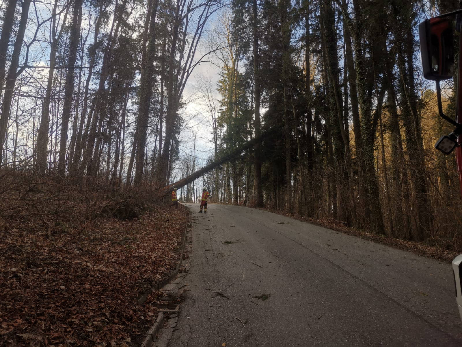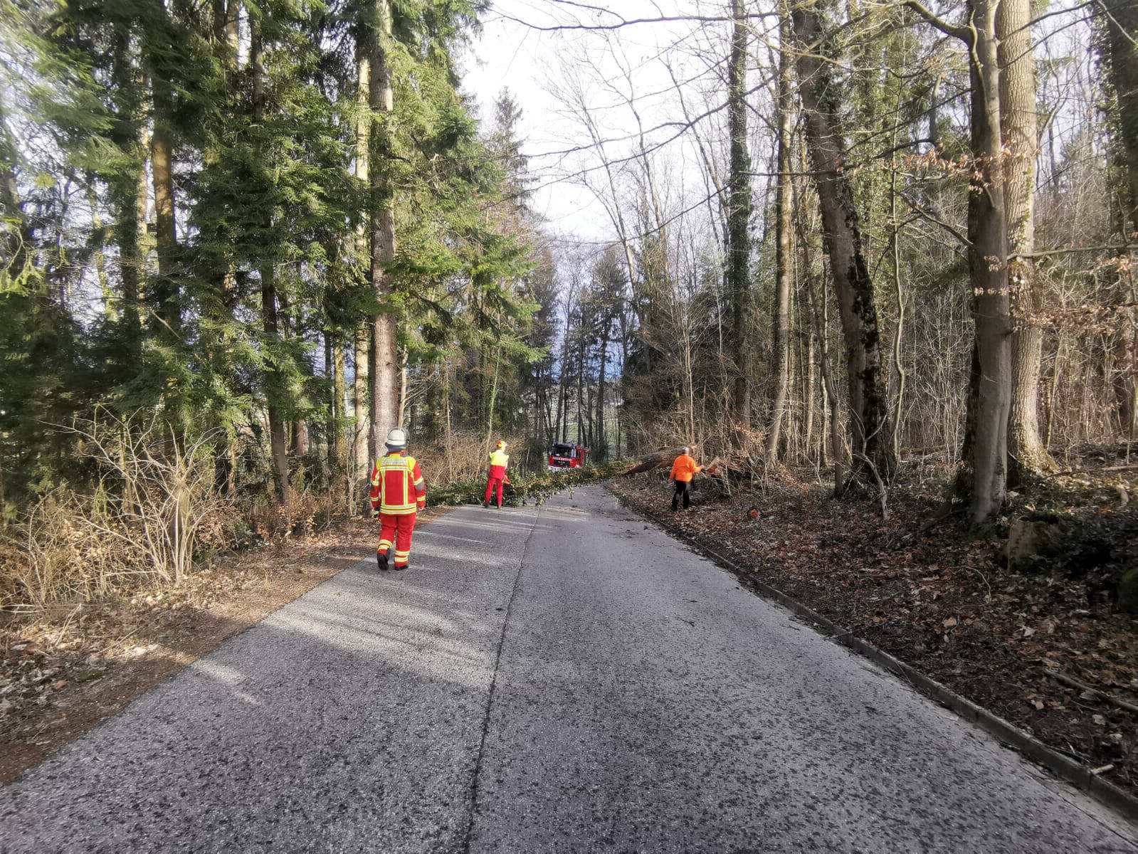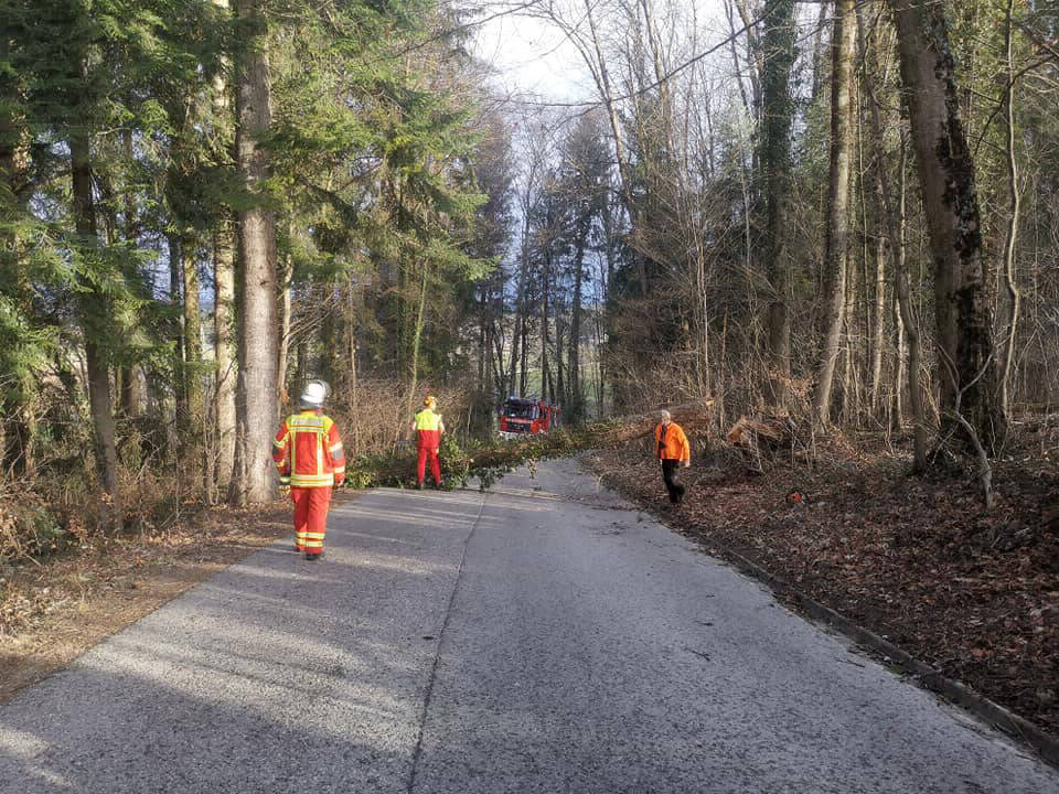 Am Montag wurden wir zu einem über die Straße gefallenen Baum alarmiert. Leider fuhren viele Mitbürger einfach unter dem Baum hindurch und erkannten die Gefahr nicht.