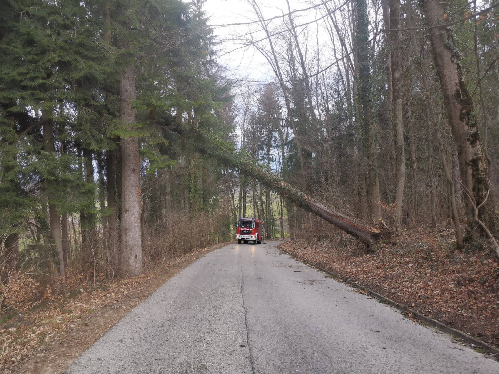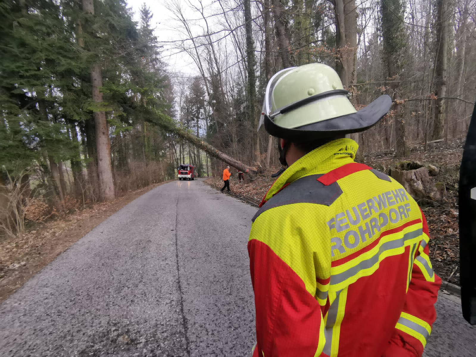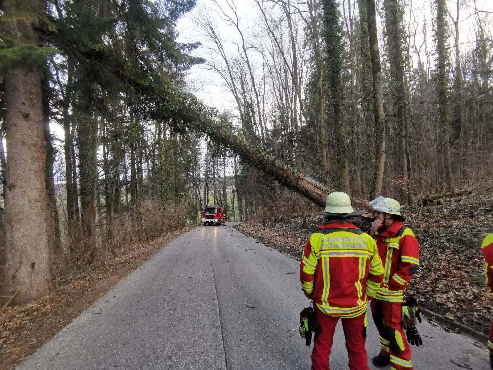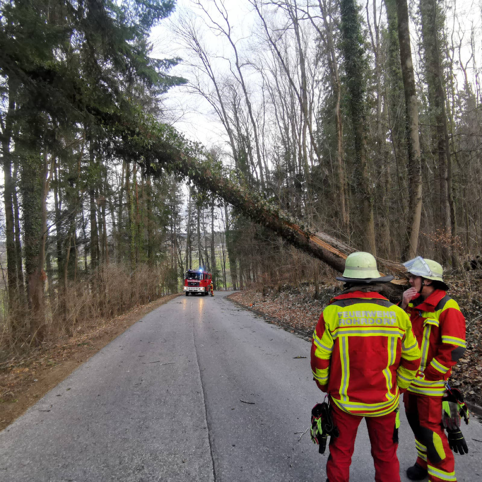 Am Montag wurden wir zu einem über die Straße gefallenen Baum alarmiert. Leider fuhren viele Mitbürger einfach unter dem Baum hindurch und erkannten die Gefahr nicht.